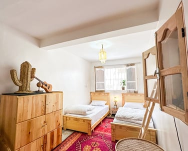 Nuestro cómodo dormitorio de 4 camas es el espacio perfecto para relajarse después de una sesión de surf. Diseñado con un ambiente cálido y acogedor, ofrece camas individuales, sábanas limpias y mucho espacio para guardar tu equipo. Ideal para viajeros solos o amigos que buscan compartir buenas vibras e historias de surf.