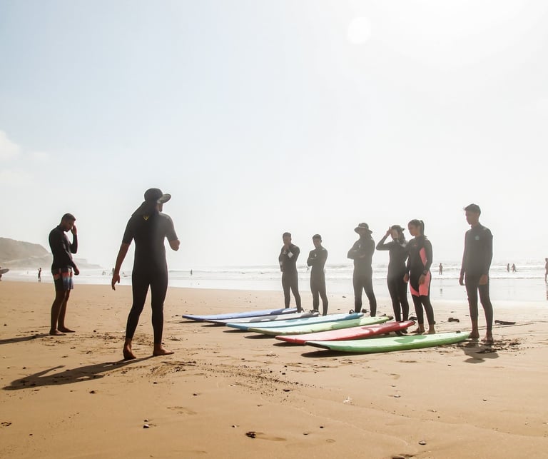 Bienvenue à Mommasurfs Surf School, où le surf est plus qu'un sport : c'est un style de vie et une façon de partager. Située à seulement 300 mètres de la plage d'Anza, à Agadir, notre école propose des cours de surf de haute qualité pour tous les niveaux, dans une ambiance conviviale et communautaire.