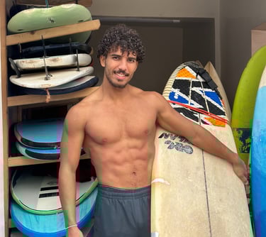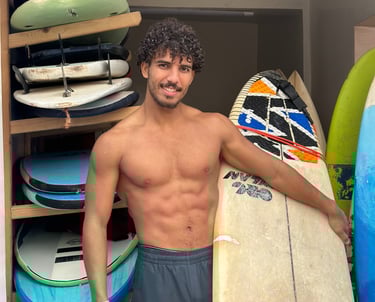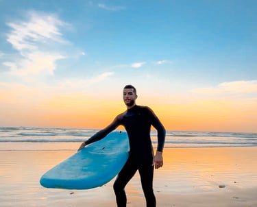 SAY HELLO TO AYOUB — A PASSIONATE SURF INSTRUCTOR WHO COMBINES PRECISION, PATIENCE, AND A TRUE LOVE FOR THE OCEAN. KNOWN FOR HIS INTELLIGENCE AND IMPECCABLE TIMING, AYOUB NEVER MISSES A WAVE. HE’S ONE OF THE KINDEST AND MOST WELCOMING PEOPLE YOU’LL EVER MEET, EXCELLING AT GUIDING BEGINNERS THROUGH THEIR LEVEL 1 SURF LESSONS WITH EASE, LAUGHTER, AND GOOD ENERGY. AFTER SPENDING TIME IN DEEP MOROCCO, AYOUB FELL IN LOVE WITH THE OCEAN — AND NOW HE’S DEDICATED TO HELPING YOU DISCOVER THAT SAME PASSION. 🌊