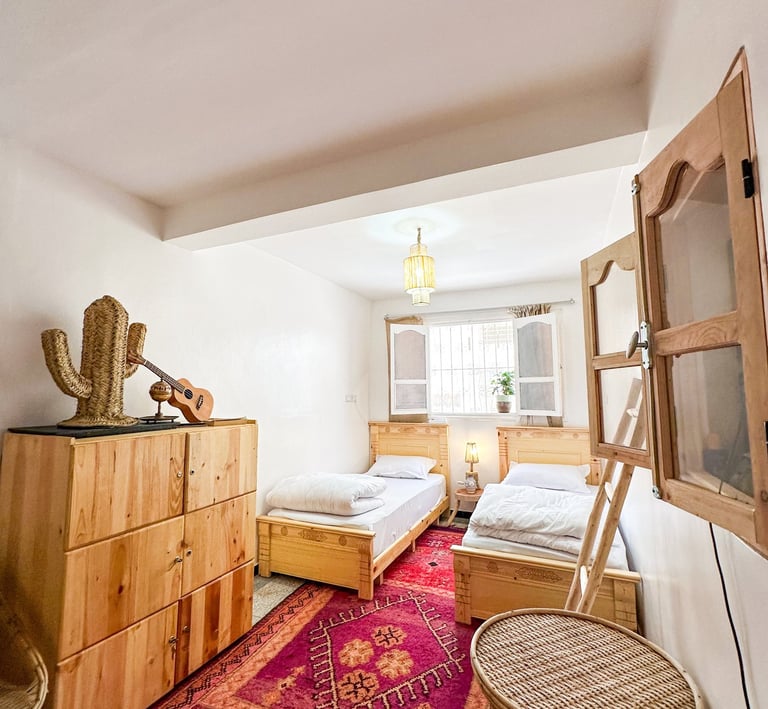 Our comfortable 4-bed dorm is the perfect space to relax after a surf session. Designed with a warm, welcoming vibe, it offers individual beds, clean linens, and plenty of space to store your gear. Ideal for solo travelers or friends looking to share good vibes and surf stories.